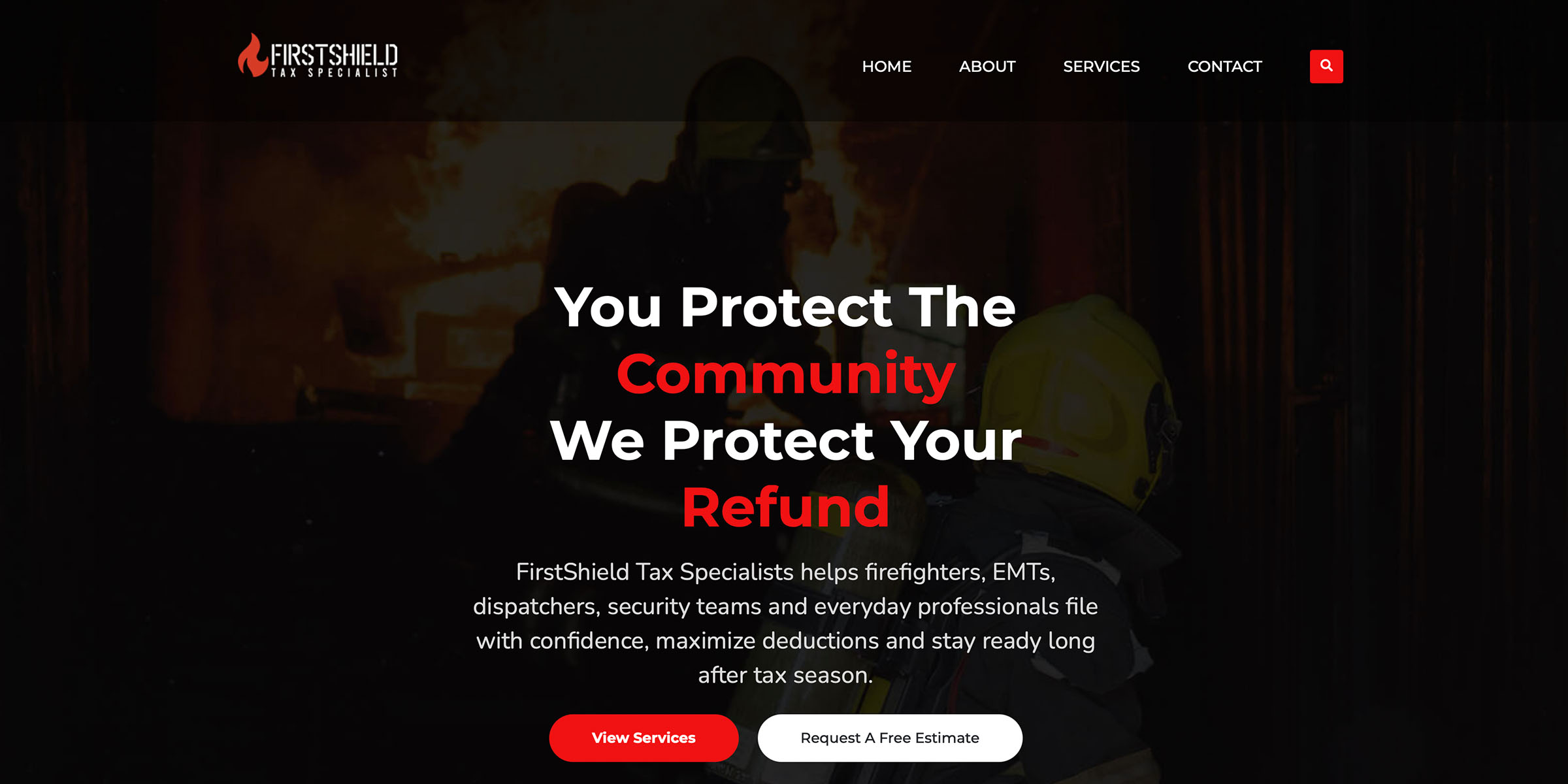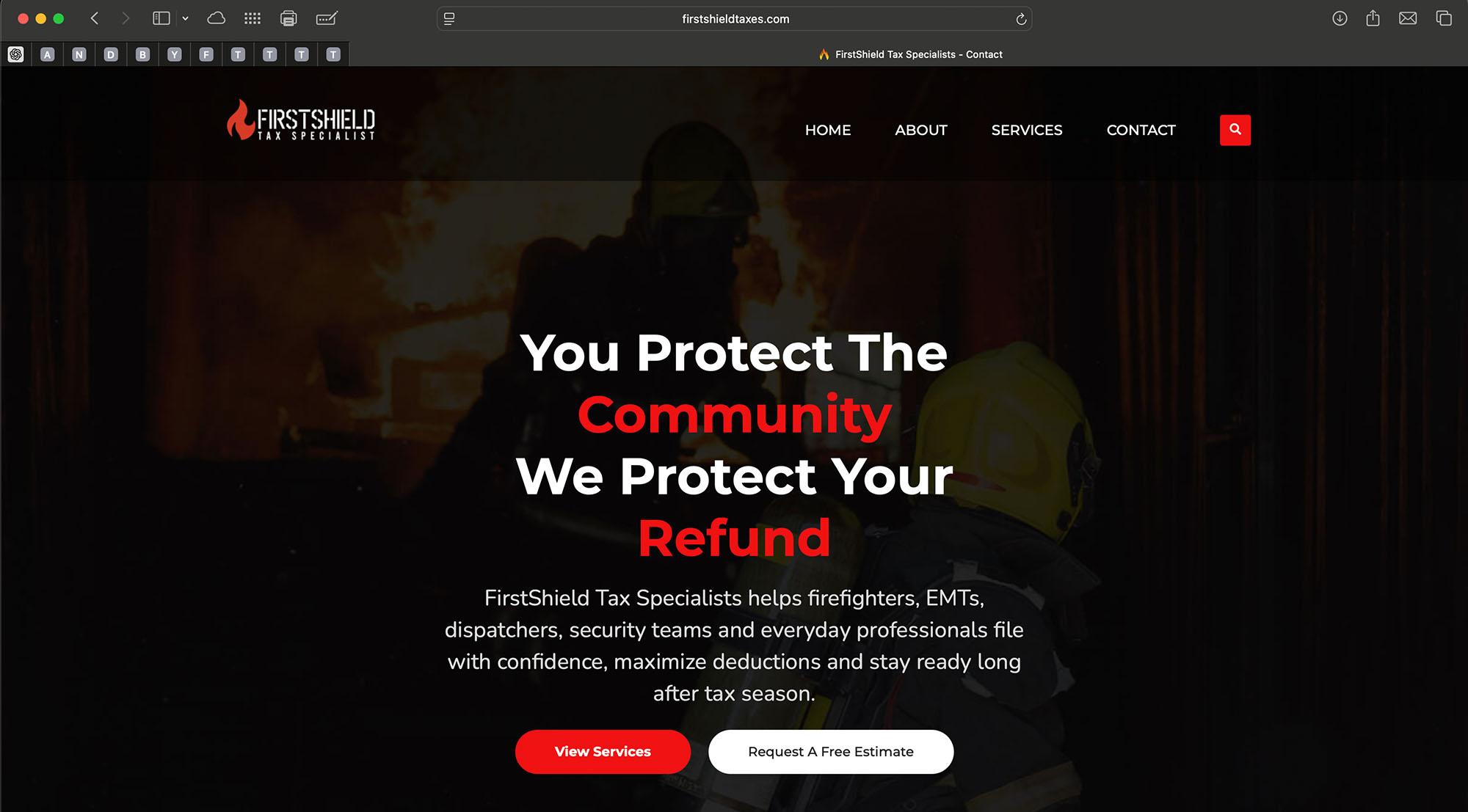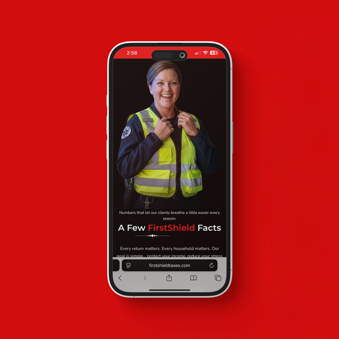 FirstShield Tax Specialists is a frontline-focused tax practice serving firefighters, EMTs, dispatchers, security teams, healthcare workers and the neighbors who support them. This project covered a full brand system—positioning, messaging, web design and visual identity—built to speak in clear, human language to people who run toward the call, not away from it.